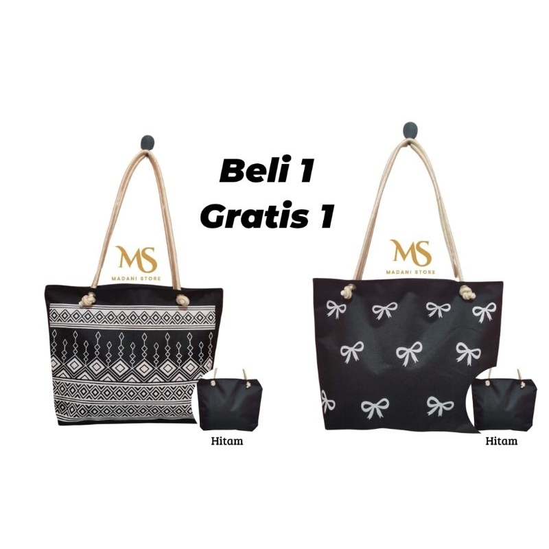 MADANII_STORE TOTEBAG KEKINIAN BELI 1 GRATIS 1 BAHAN KANVAS POLIESTER TOTEBAG WANITA / MATA + PITA