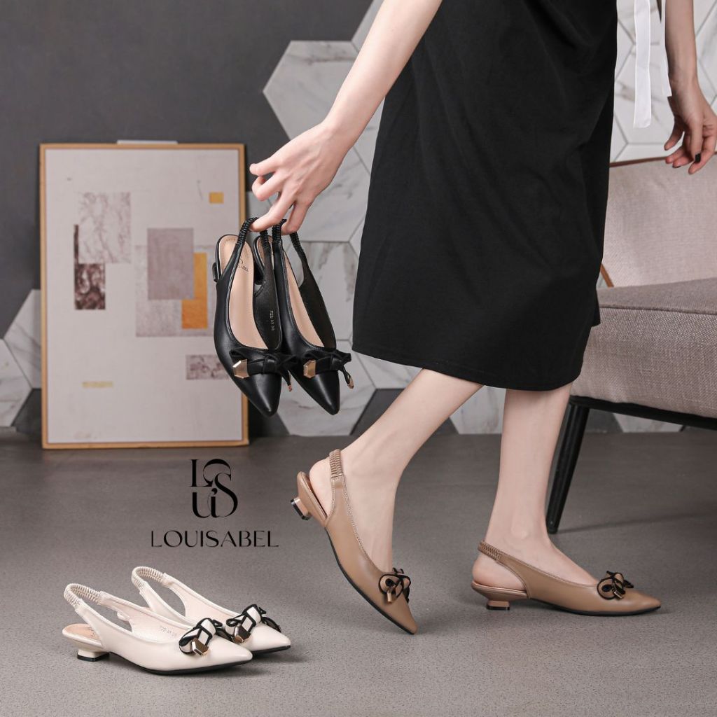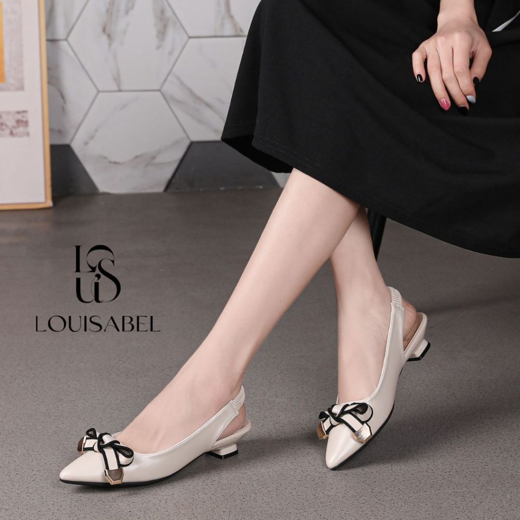 LOUISABEL Lumi Bow Diva Block Heels Slingback Sepatu Wanita LSB-722-A1