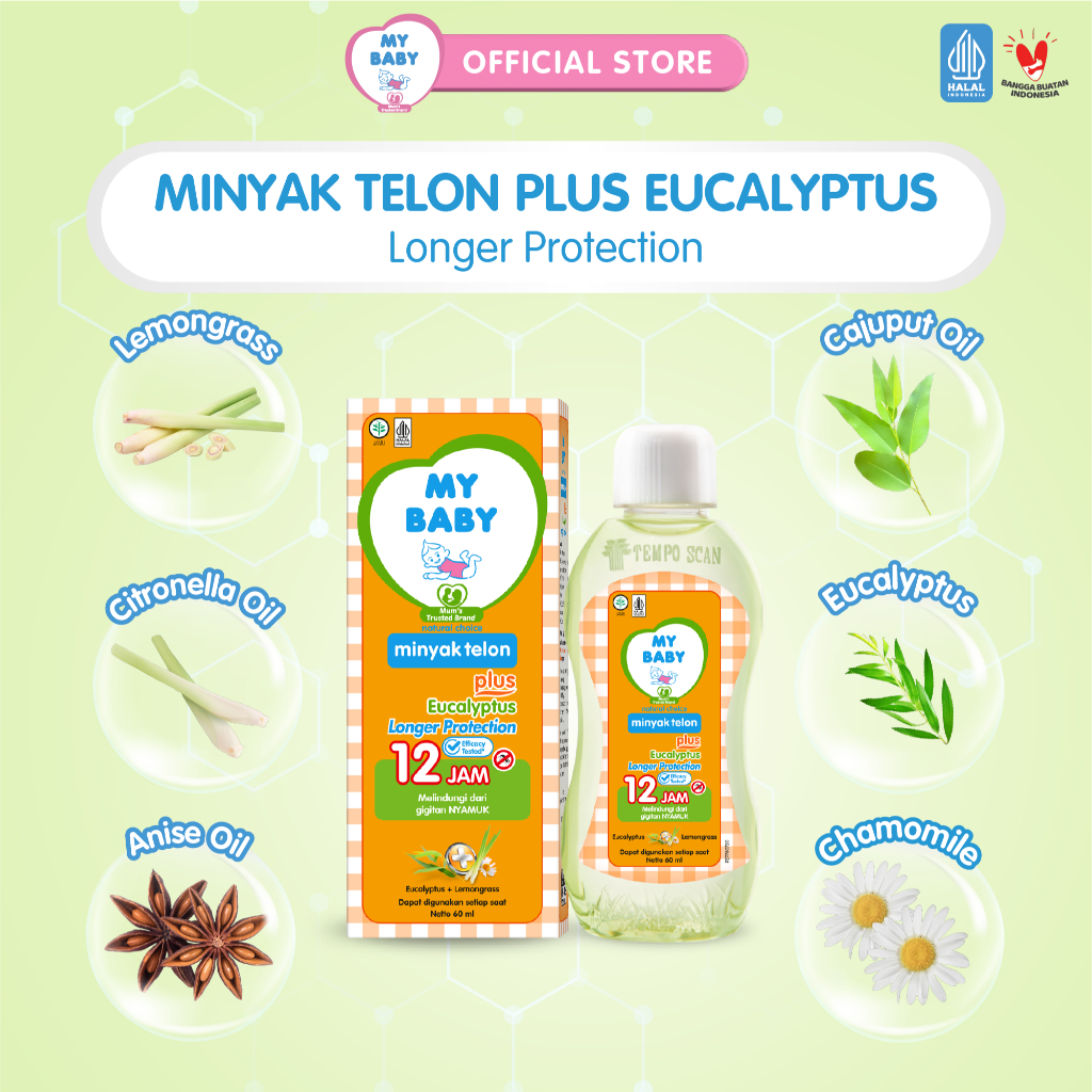 MY BABY Minyak Telon Plus Longer Protection 12 Jam Perlindungan Anti Nyamuk 150 mL 2 pcs Bundle Pack Exp: 05.2026