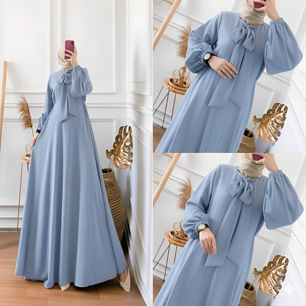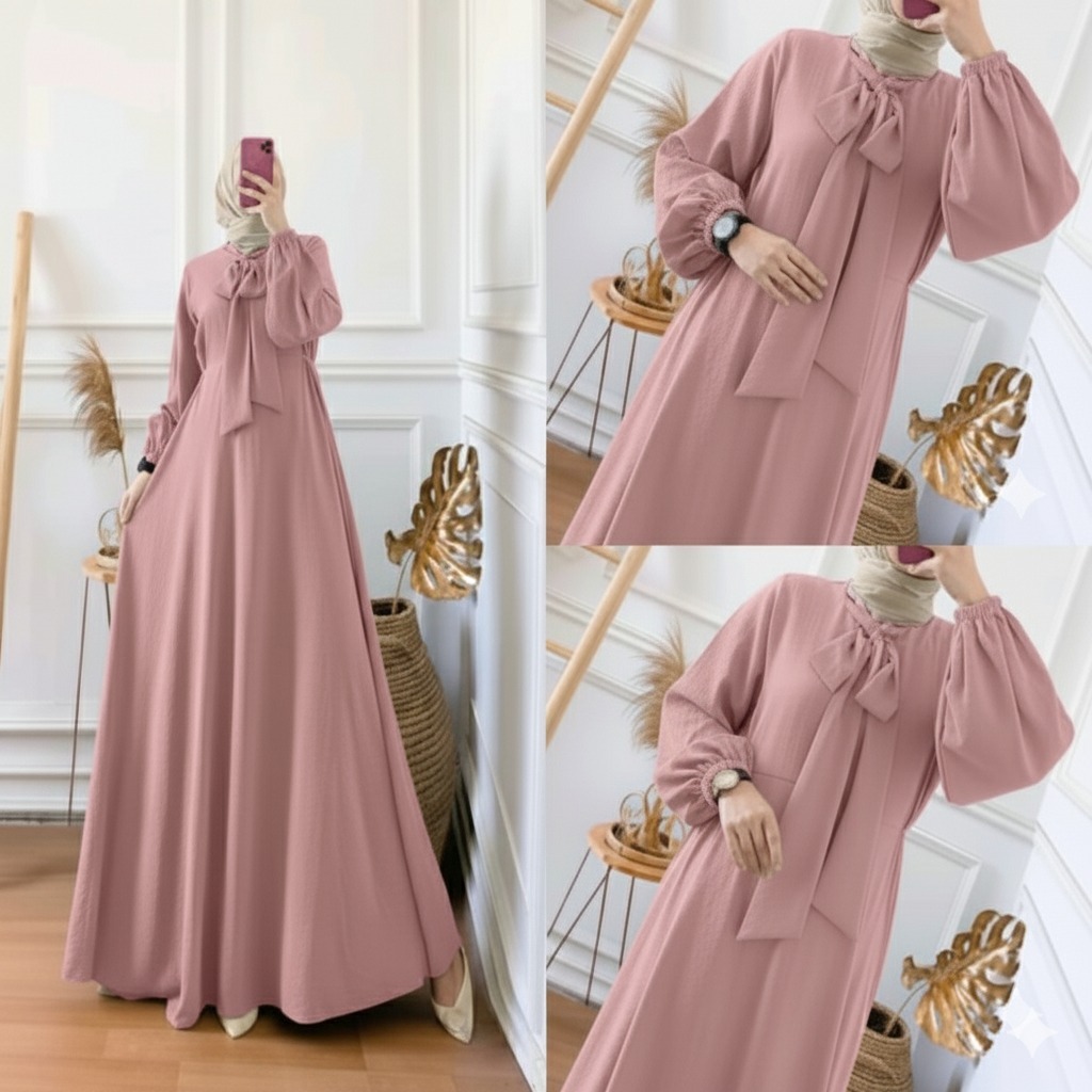 Gamis Aluna Terbaru Pesta Muslimah Mat Crinkle Premium Terbaru 2025 Polos
