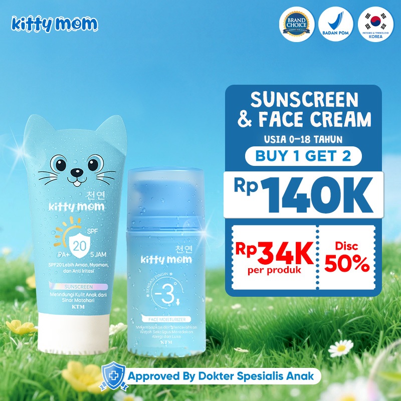 Kitty Mom Baby Skincare Paket Perawatan Kulit Anak Moisturizer, Sunscreen SPF 20 Baby Skincare