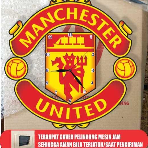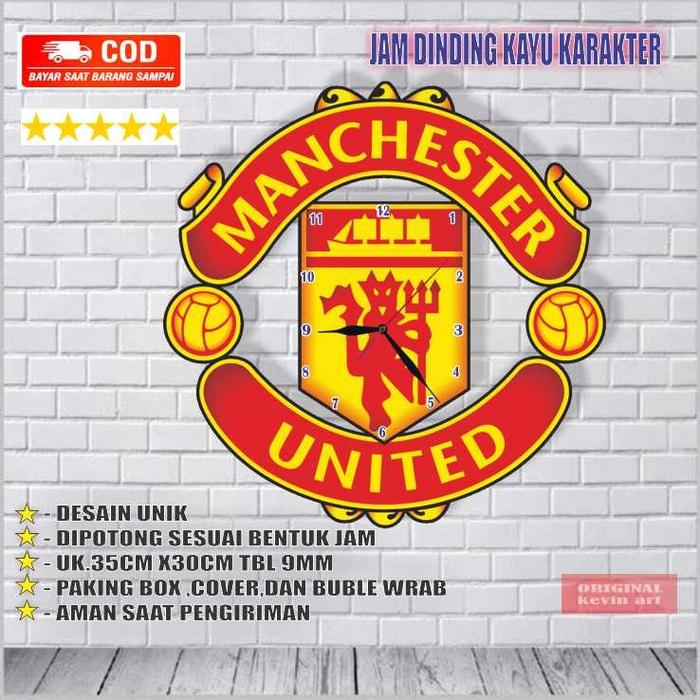 Jam Dinding Kayu Unik Minimalis Modern Logo Manchester United 1 Set Gratis Hiasan Dinding Promo Murah Kado Hadiah Custom