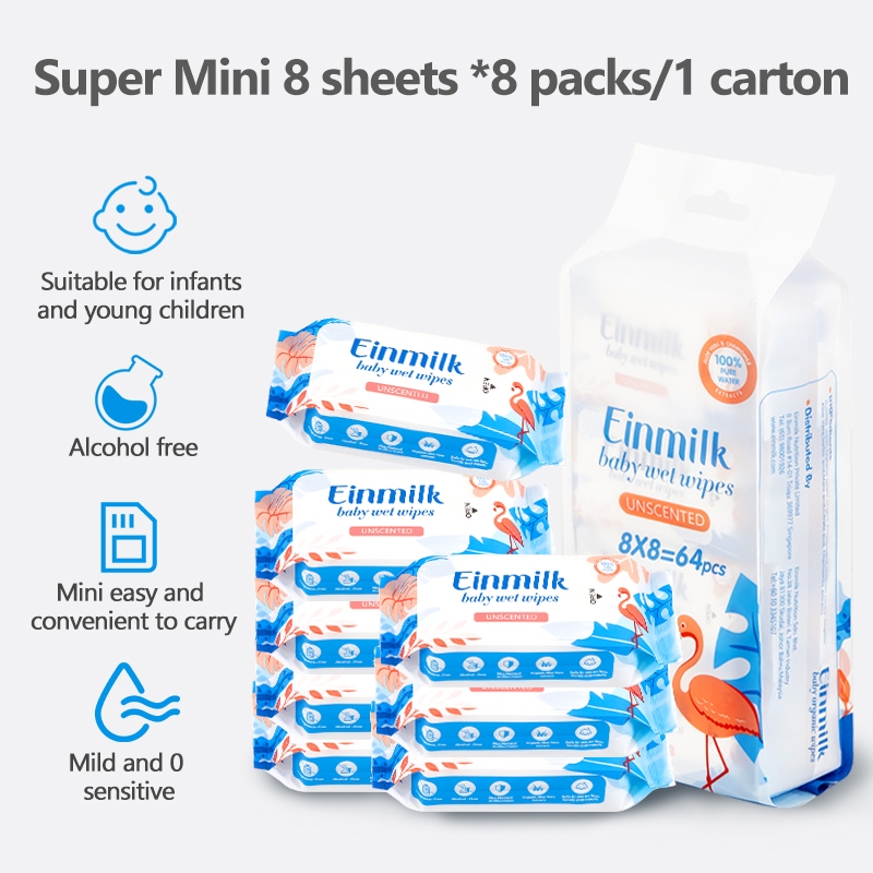 Einmilk320PC Beli 1 Gratis 1 Premium Super Tebal Tisu Basah Organik Bayi Tisu Basah Basah 8 bungkus per kotak 8 sheets per pack Tanpa Pewangi WW4503RE