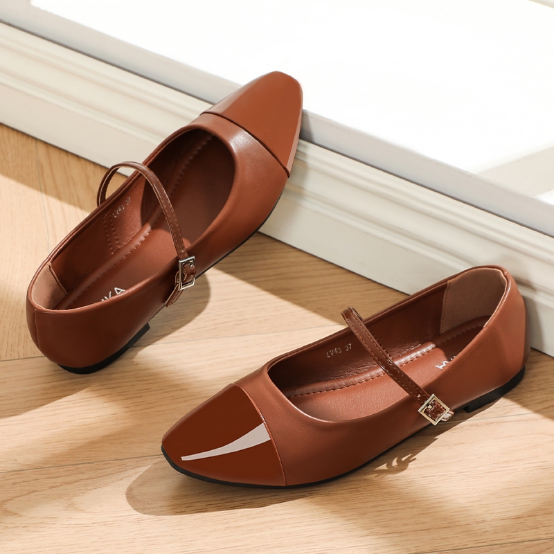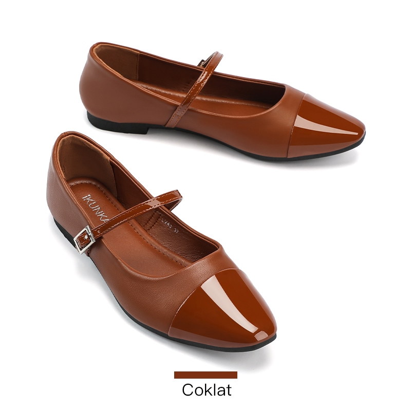IKUNKA Sepatu Flat Shoes Wanita Mary Jane Sepatu Kerja Wanita Mules Sepatu Wanita Heels Indah LV43