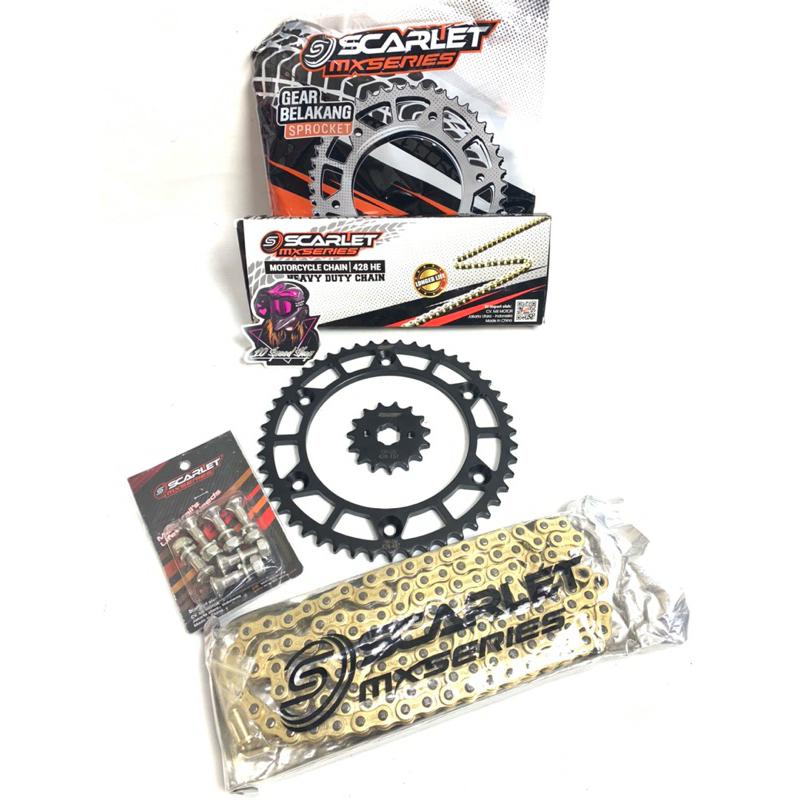 [PROMO] Paket Gear Set CRF 150 Depan Belakang Set Rantai Gold Gear Gir Set CRF 150 Scarlet Mxseries Black