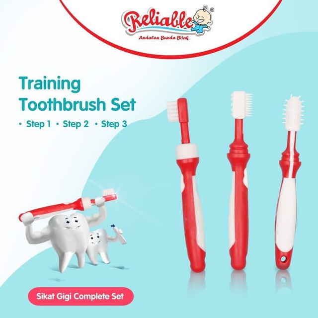 Sikat Gigi Complete Set Baby Sikat Gigi Bayi Reliable 3 Step Sikat Gigi Bayi BPA Free Sikat Gigi 3 in 1 Perlengkapan Mandi Bayi