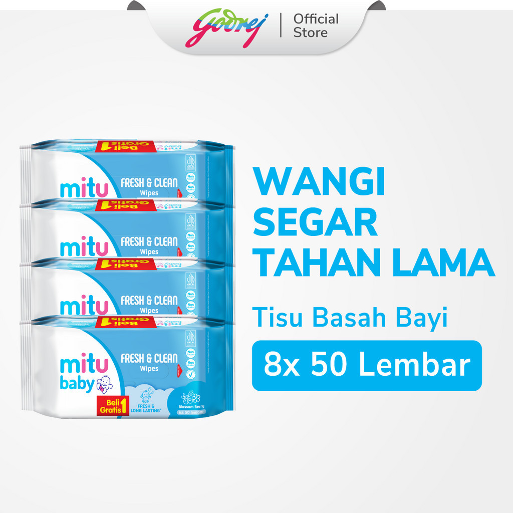 Beli 1 Gratis 1 Mitu Baby Fresh & Clean Wipes Blossom Berry 50'S x4 Tisu Basah Bayi