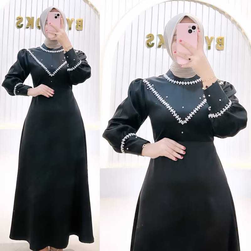 Gamis Putih Dress kekinian terbaru Claudya Lengan Balon payet Size M L XL XXL Velvet