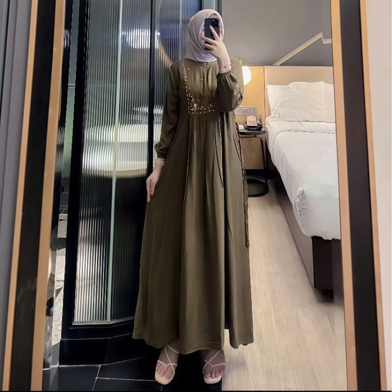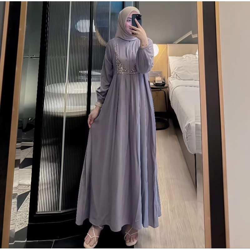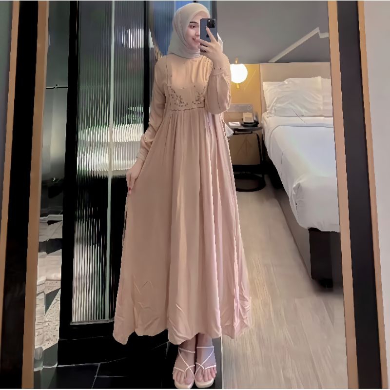 Mecca Dress Gamis Lebaran Bordir Rayon Twil Premium Terbaru Dress Motif Model Kekinian