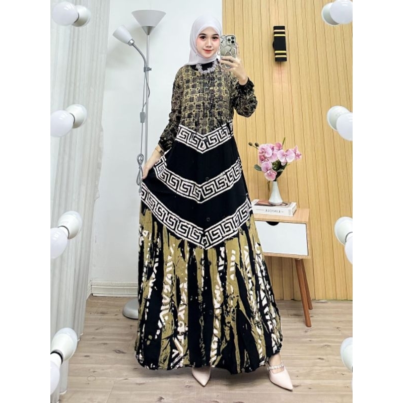 gamis rayon semi twill gamis batik cap cetak gamis rayon terbaru