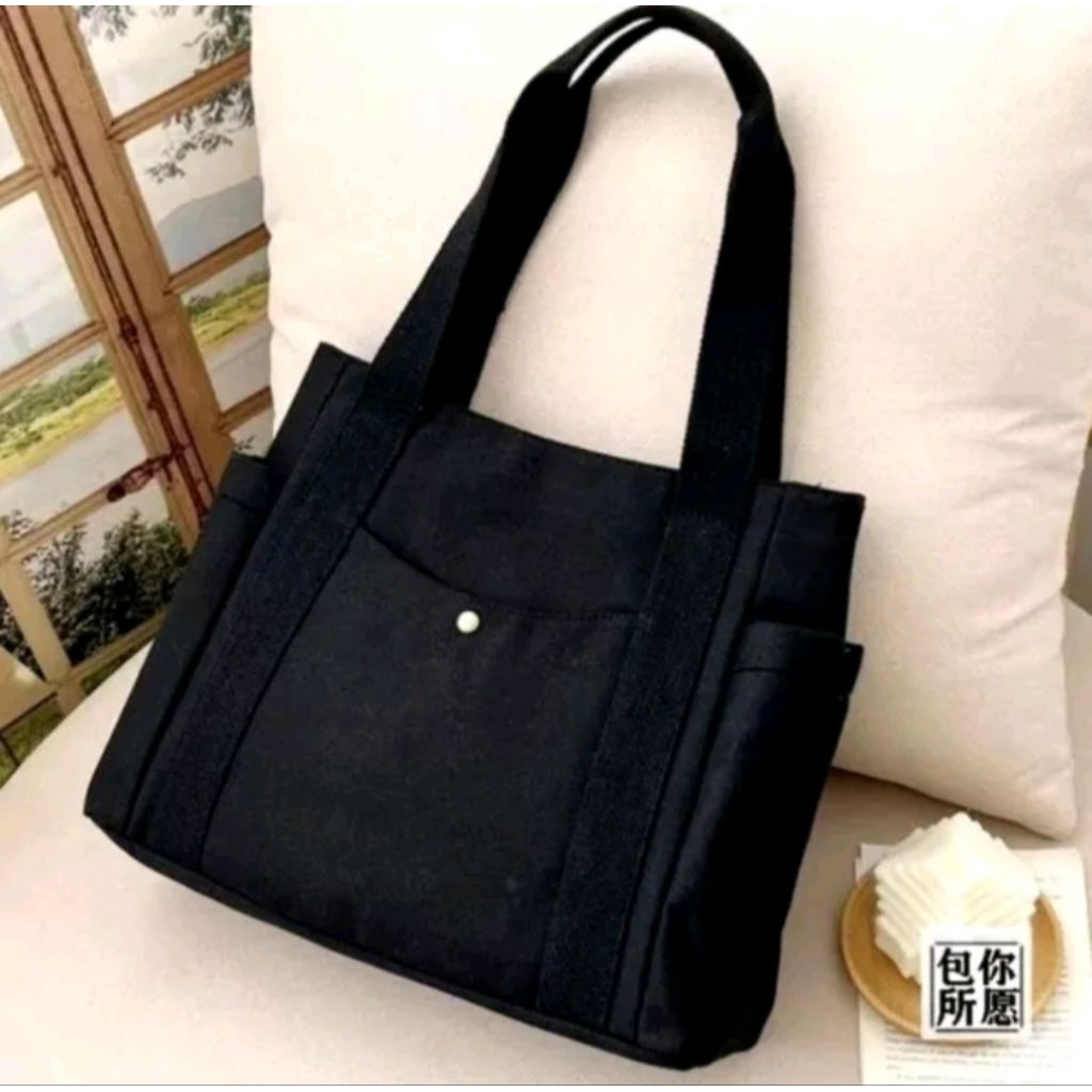 TOTE BAG SERBAGUNA KANVAS HITAM DAN CREAM