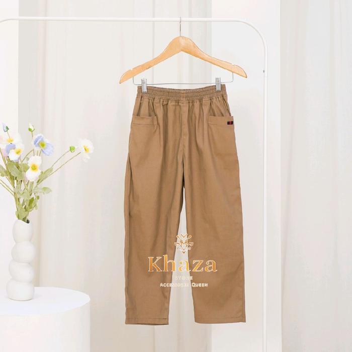 Unicloo Pants Bahan Cotton Twill Size L - Xl - Xxl - Xxxl Celana Panjang Wanita 7/8 Style Pinggang Full Karet Stretch Te