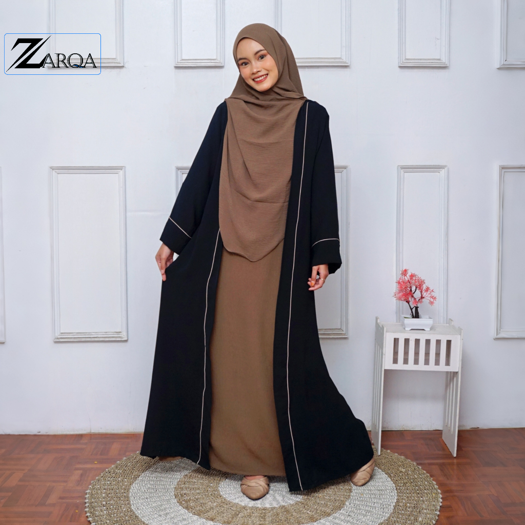 ZARQA Luna Gamis Wanita Polos Two Tone Premium – Desain Outer Look Elegan Busui & Wudhu Friendly