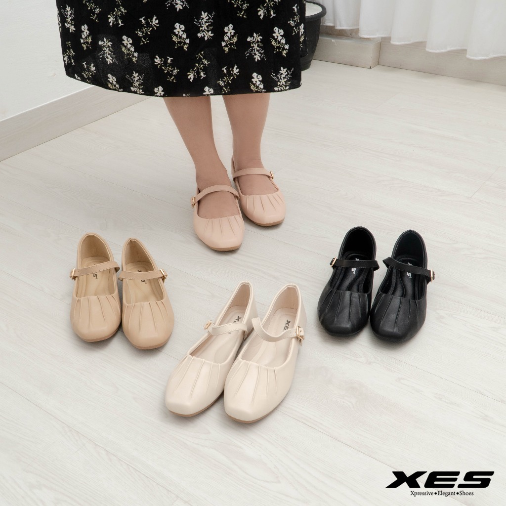 XES LINDY-768 - Sepatu Flatshoes Mary Jane Wanita Sepatu Kerja Wanita 1cm