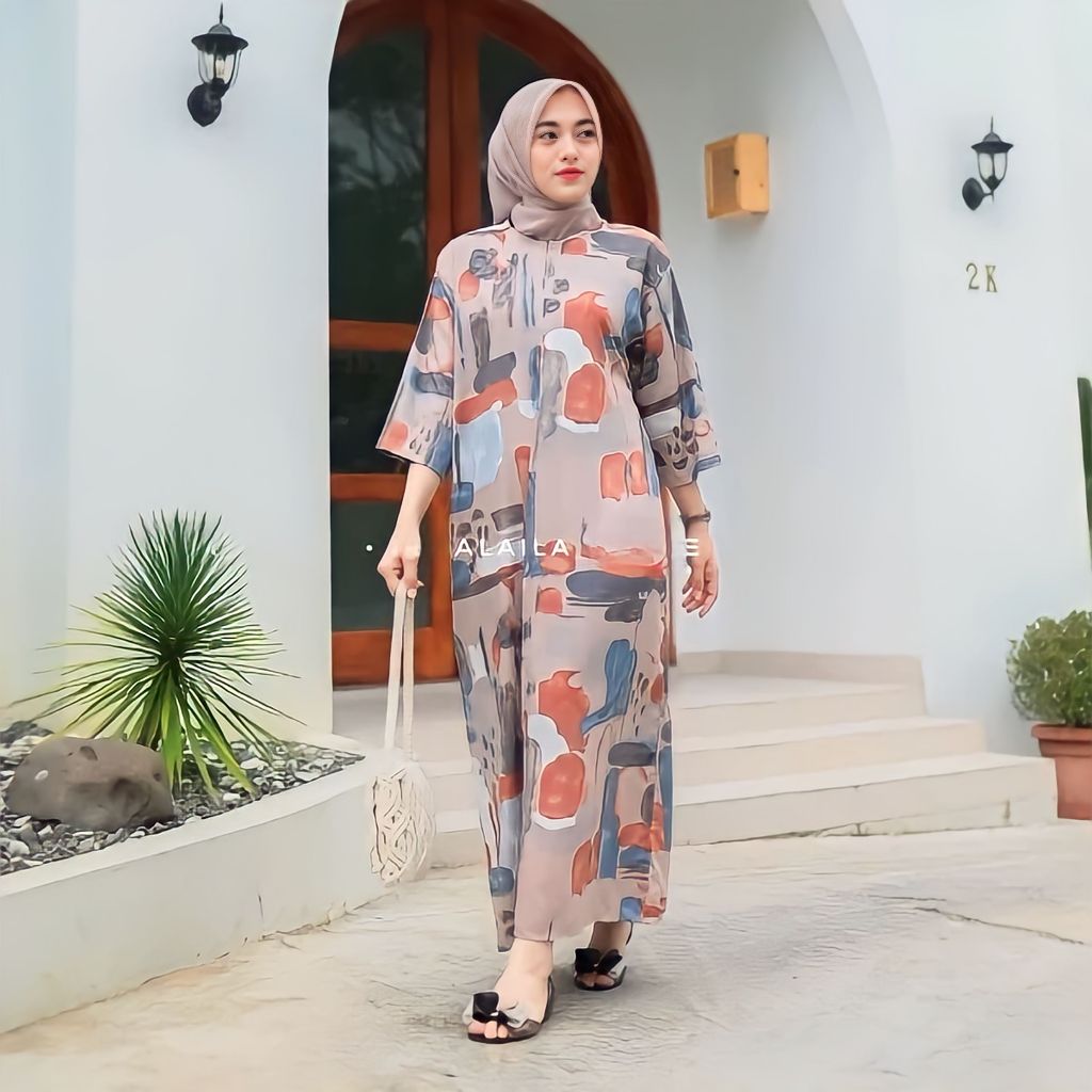 BAJU GAMIS MUSLIM SYARI BUSUI RESLETING DEPAN LENGAN 34 TANGAN PANJANG WANITA JUMBO REMAJA DEWASA