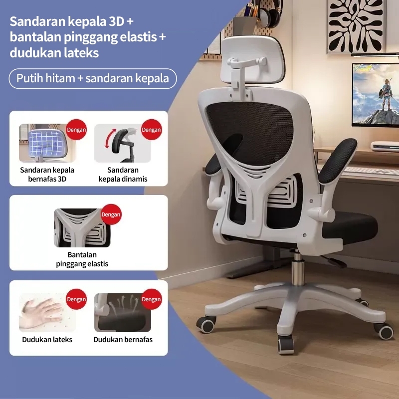Rabbitpunk - Kursi kantor yang nyaman/kursi kerja penyangga pinggang rumah/kursi gaming angkat jaring yang nyaman