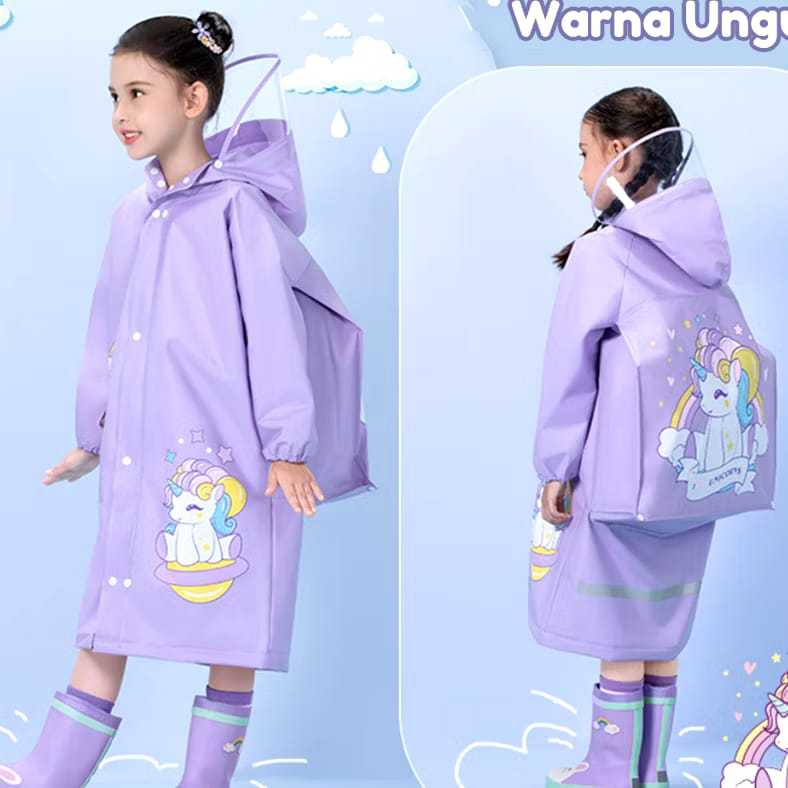 HM113 Jas Hujan Anak Ransel Jas Hujan Anak Hoodie Anak Laki Laki Perempuan Ponco Dengan Ruang Ransel