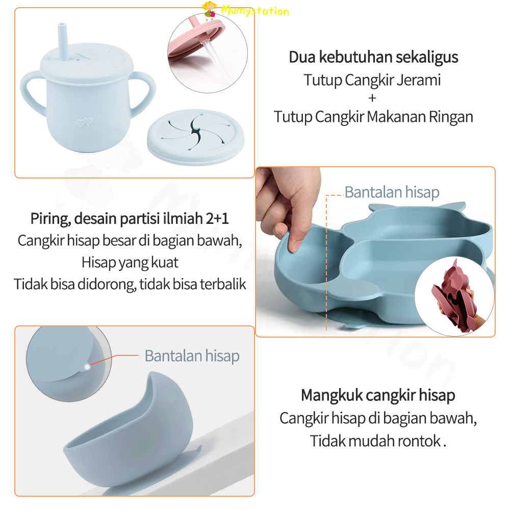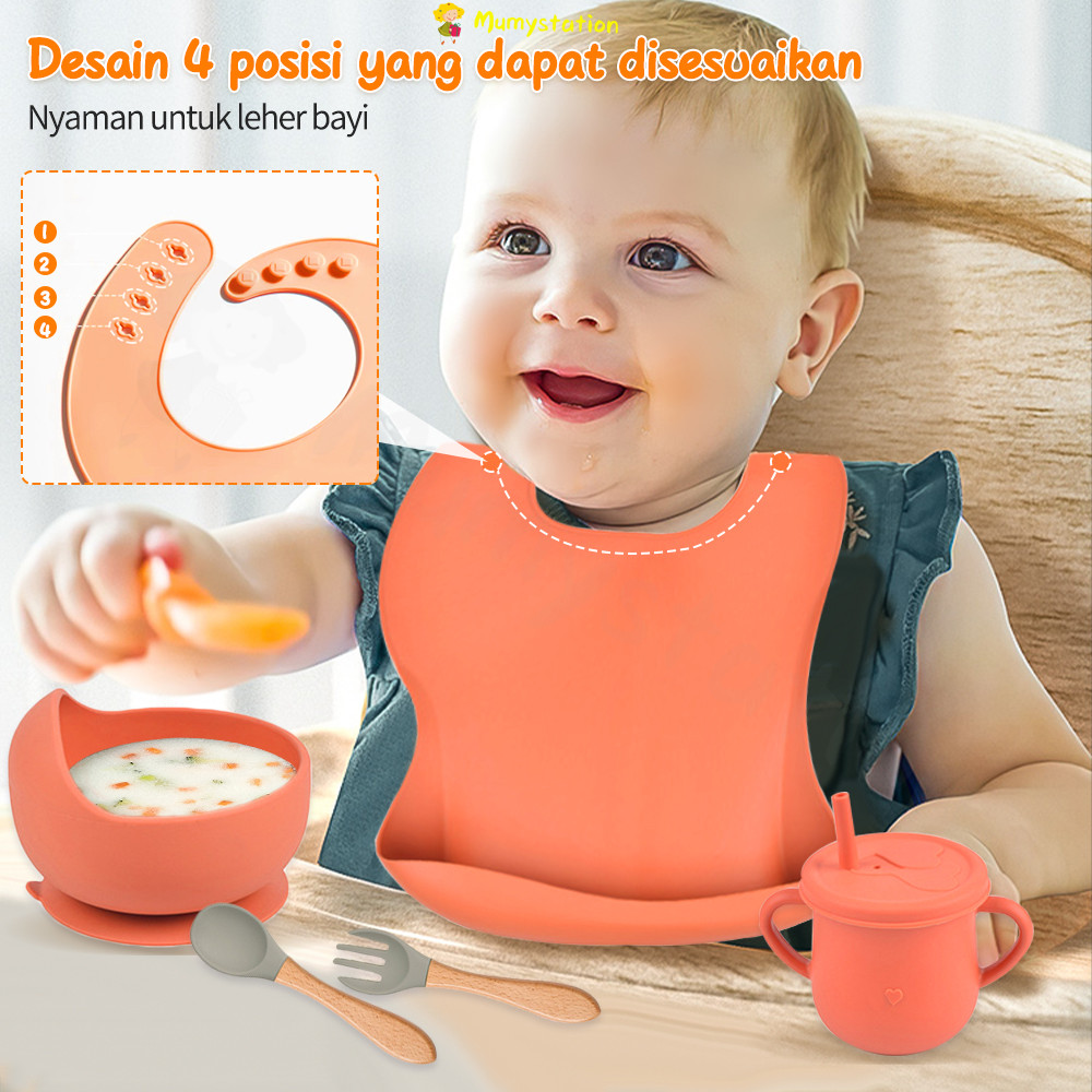 Mumystation 8in1 Tempat Makan Bayi Silicon Peralatan Mpasi Bayi Celemek Lengkap Waterproof Baby Feeding