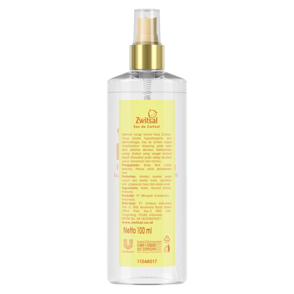 Zwitsal Body Mist Eau De Zwitsal Spray 100 mL x2