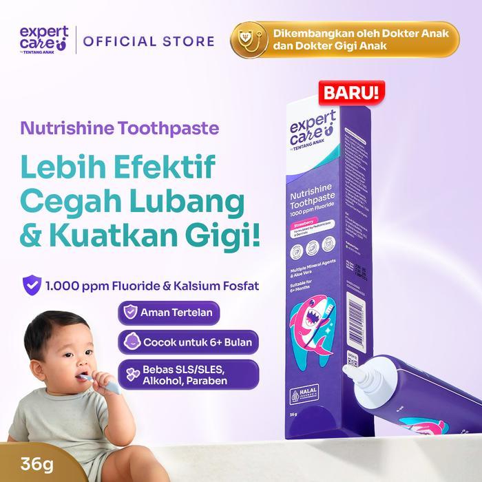 Expert Care Nutrishine Toothpaste Pasta Gigi Bayi dan Anak dengan Fluoride 1.000 ppm dan Kalsium Fosfat Efektif Cegah Gigi Berlubang