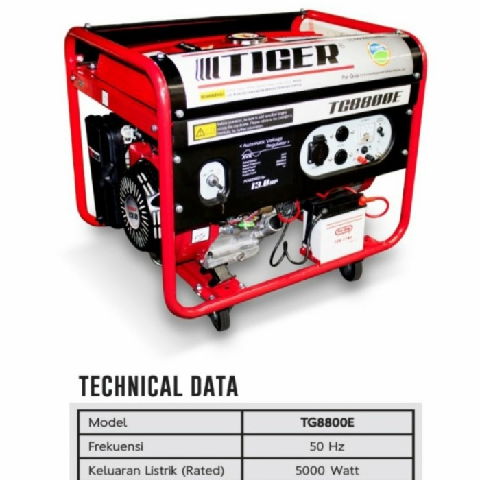 Mesin Generator Set TIGER TG 8800 E 55KW Genset TG8800E 5500 Watt Bensin