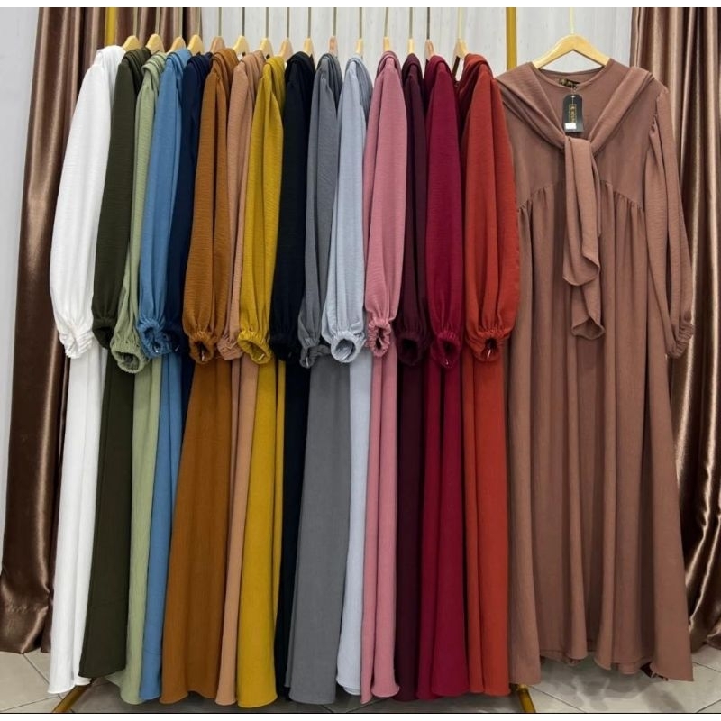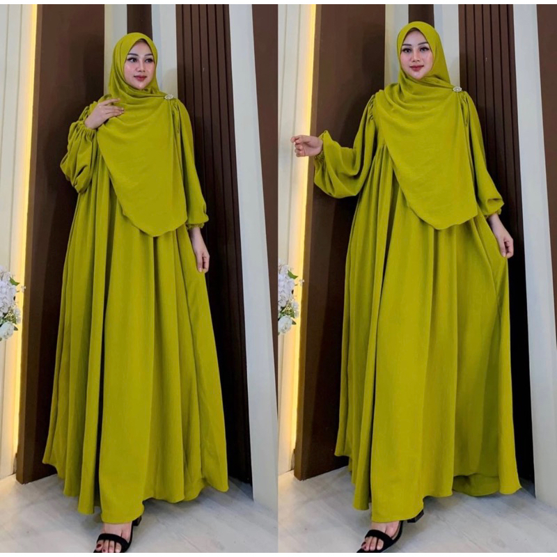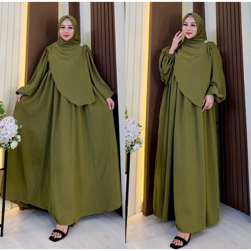 Luna Set Syar'i Pashmina Oval Gamis Wanita Bahan Crinkle Airflow Premium