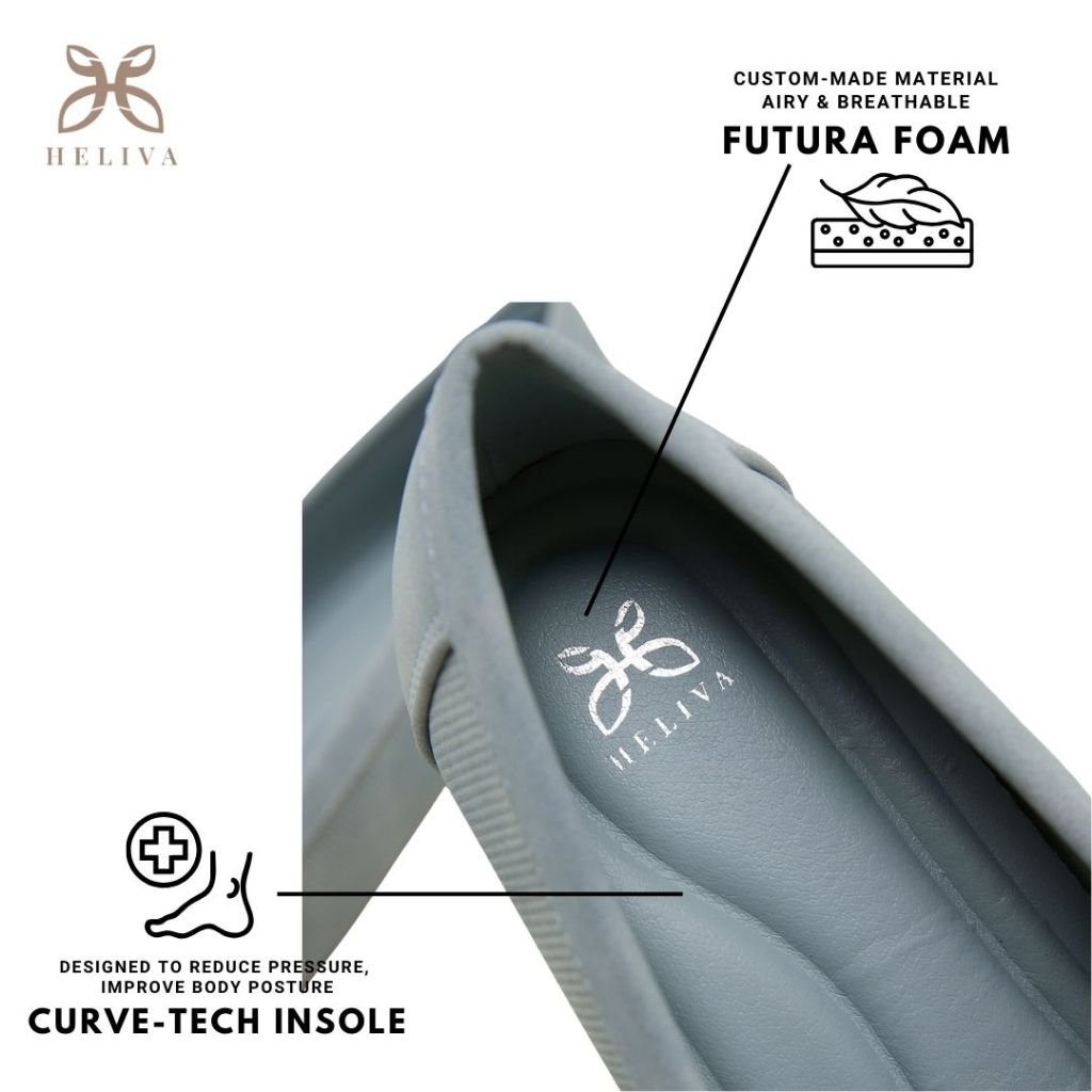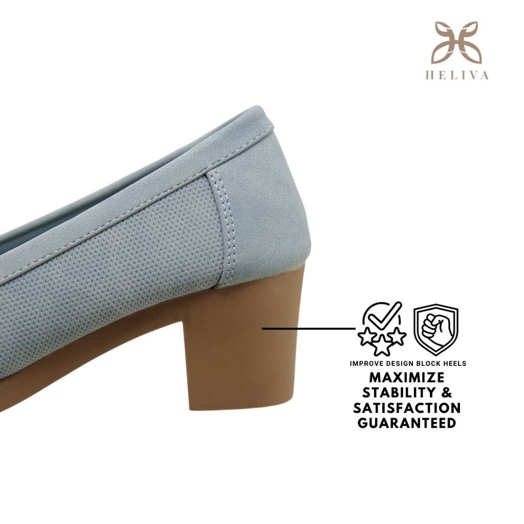 C236 GY Heliva Marvelia Sepatu Pantofel Kerja Wanita Hak Tahu Sol 6cm Bahan Canva Halus Polos HV7800