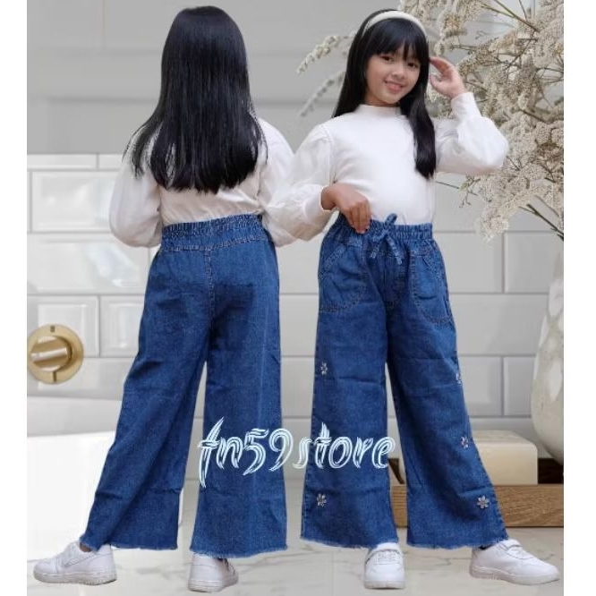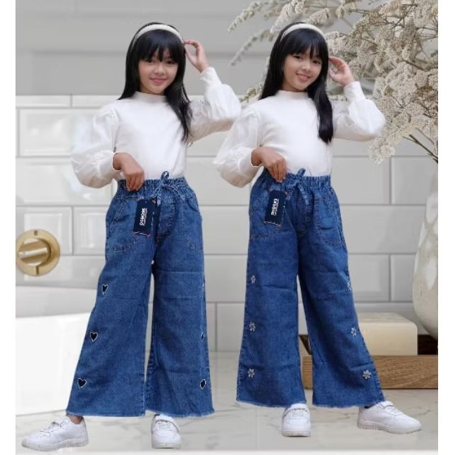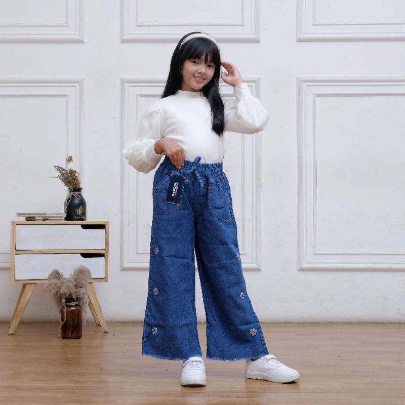 KULOT BORDIR ANAK PEREMPUAN CELANA PANJANG JEANS DENIM USIA ANAK SAMPAI REMAJA TERBARU
