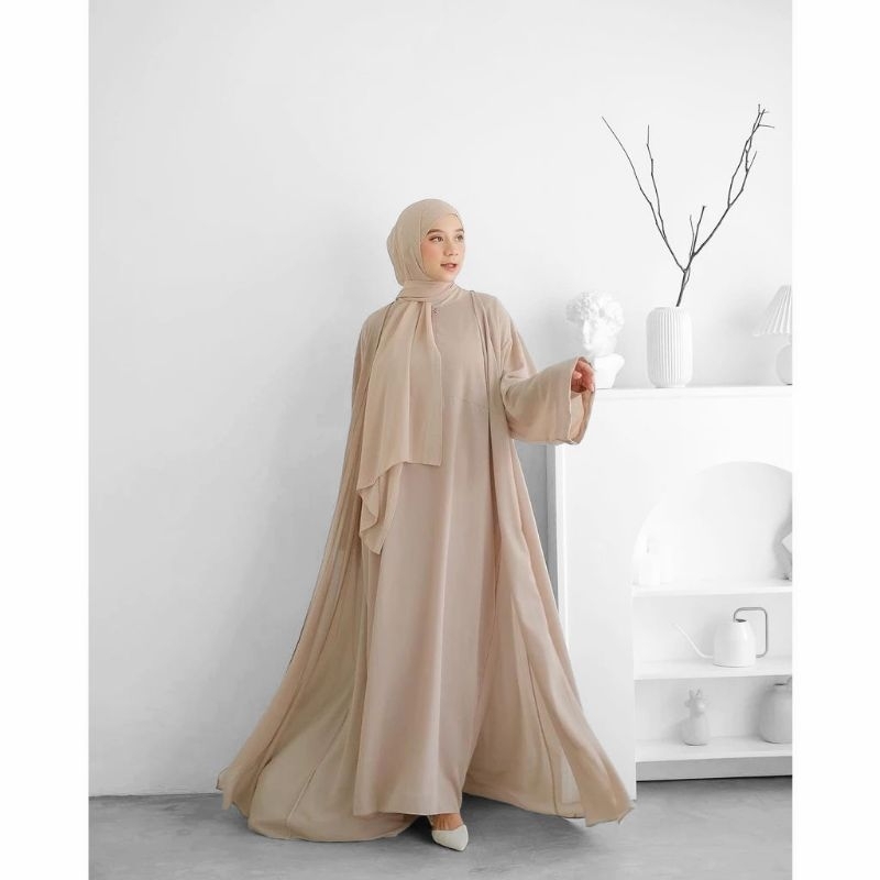 Abaya outer 2in1 gamis set iner cringkel airfrom salwa dres fashion muslim terbaru by Nurra Fashion
