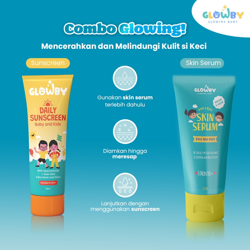 Glowby Combo Glowing Daily Sunscreen 30 ml dan Skin Serum Lotion Wajah dan Badan 100 ml