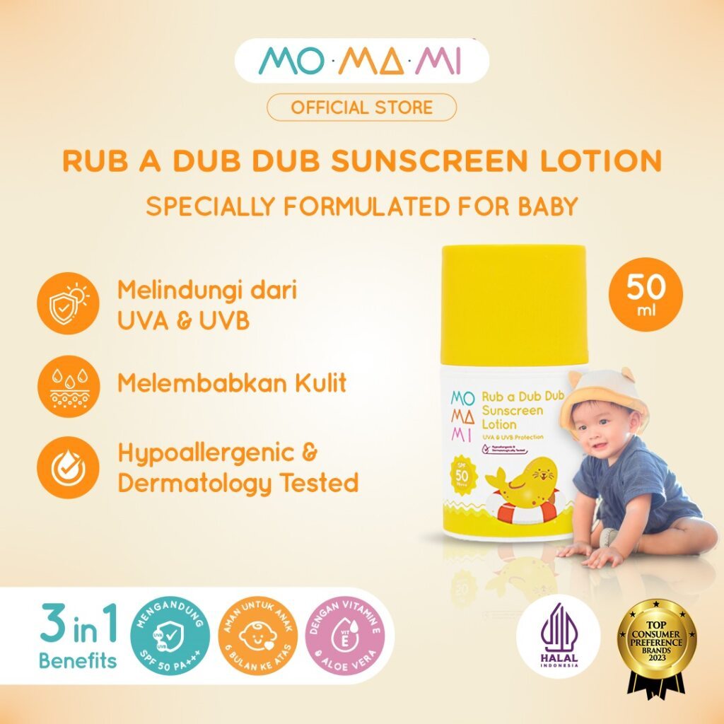 Momami Rub A Dub Dub Sunscreen 50ml – SPF 50 PA+++ Sunscreen Lotion Anak Aman untuk Kulit Sensitif
