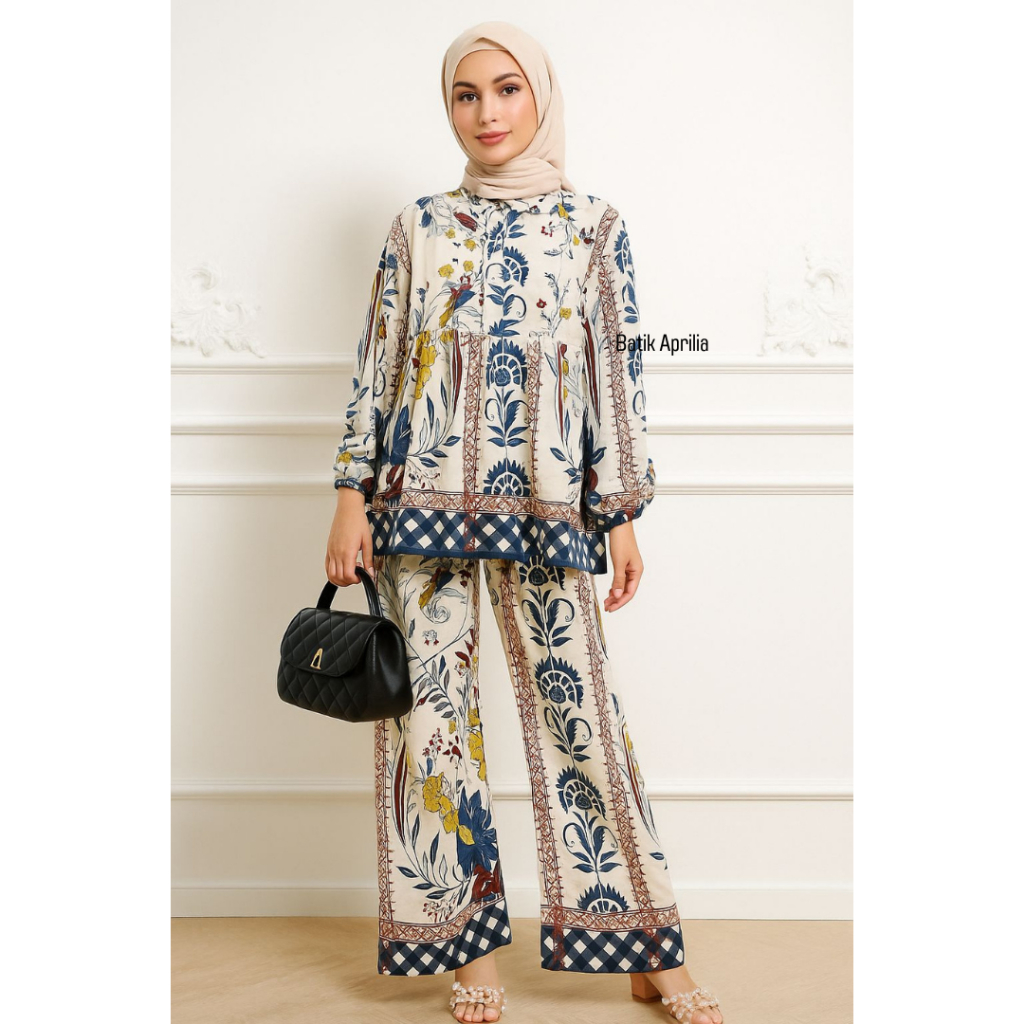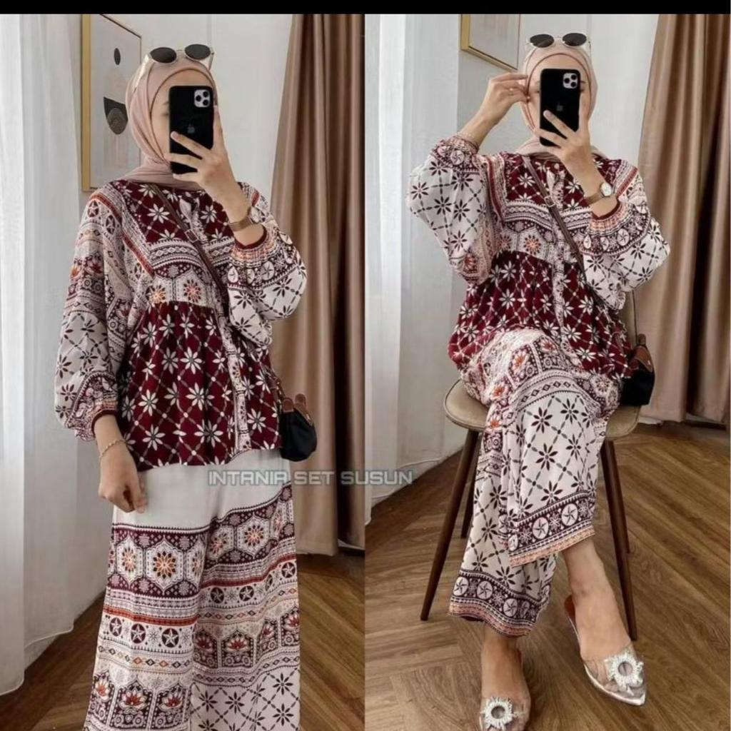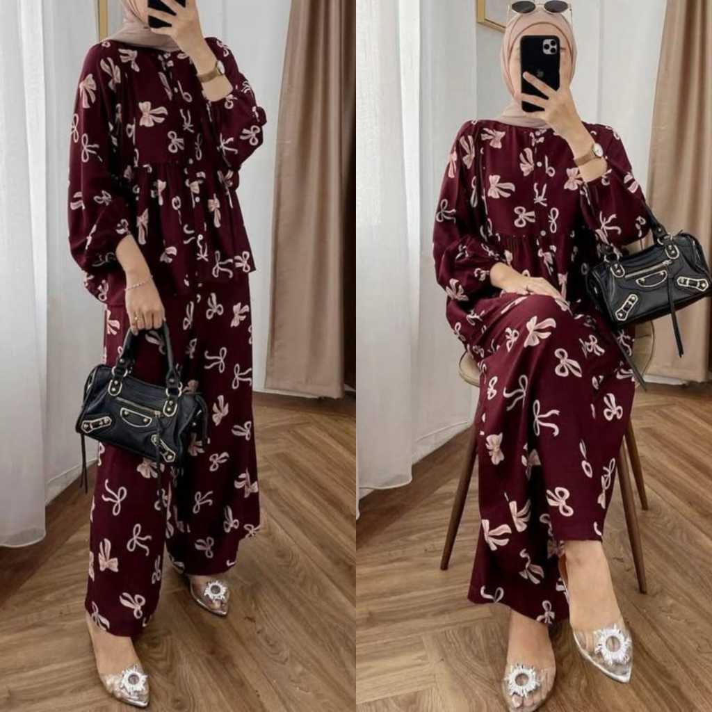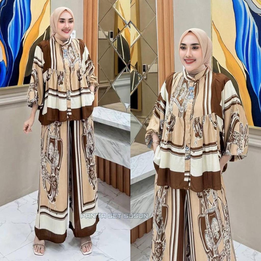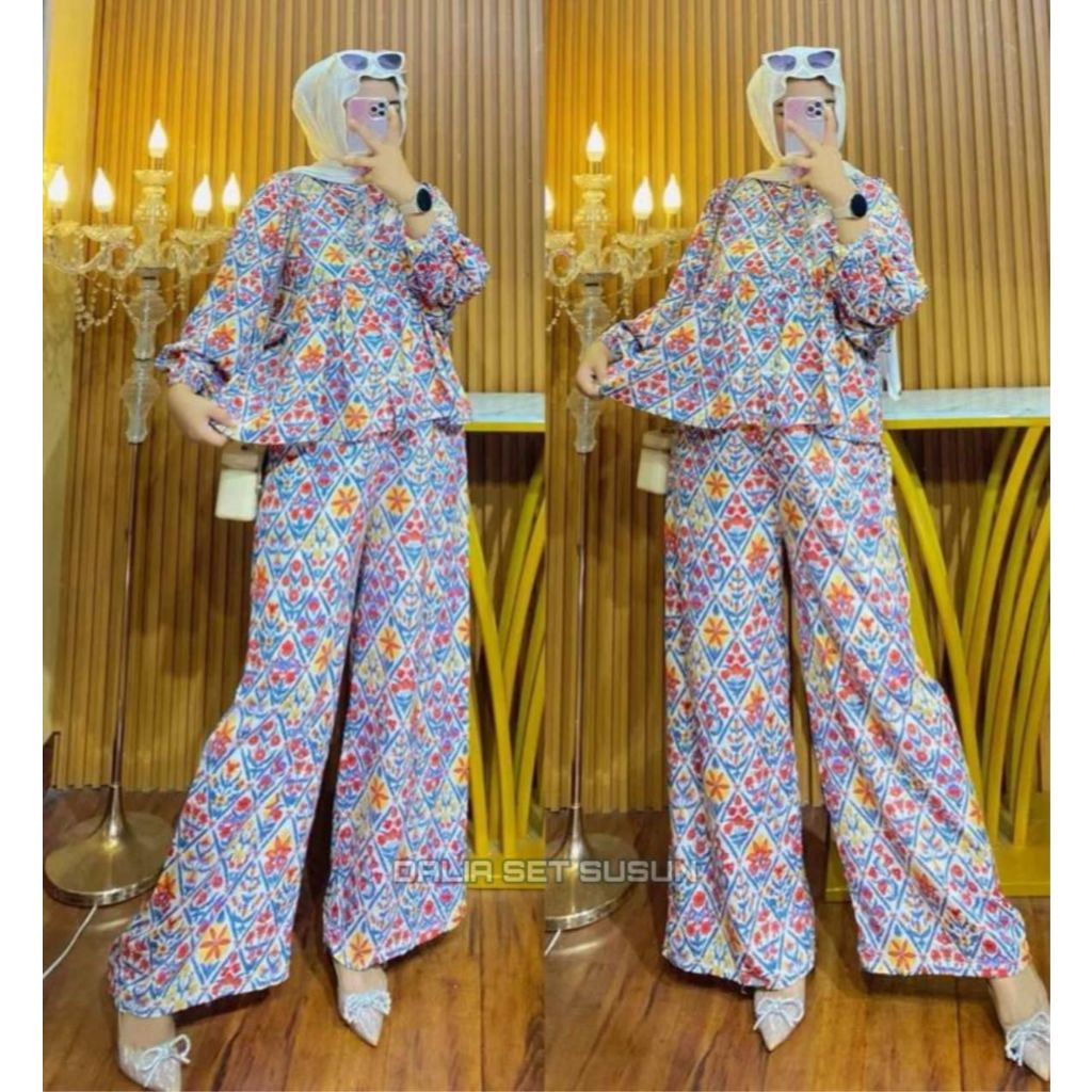 Setelan Rayon Adem Wanita Susun Lengan Balon Motif Terbaru Viral One Set Rayon Adem Lengan Balon Motif Kekinian