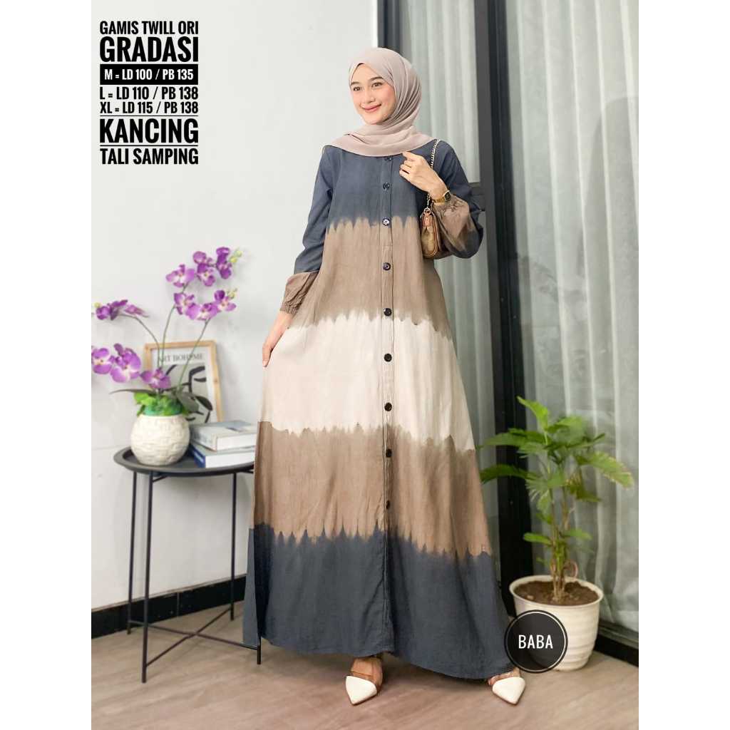 Gamis Twill Ori Premium Motif Gradasi Warna Warni