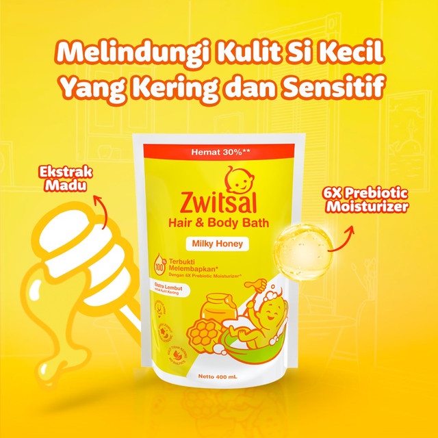 Zwitsal Baby Bath Hair and Body Milky Honey 400ml x4
