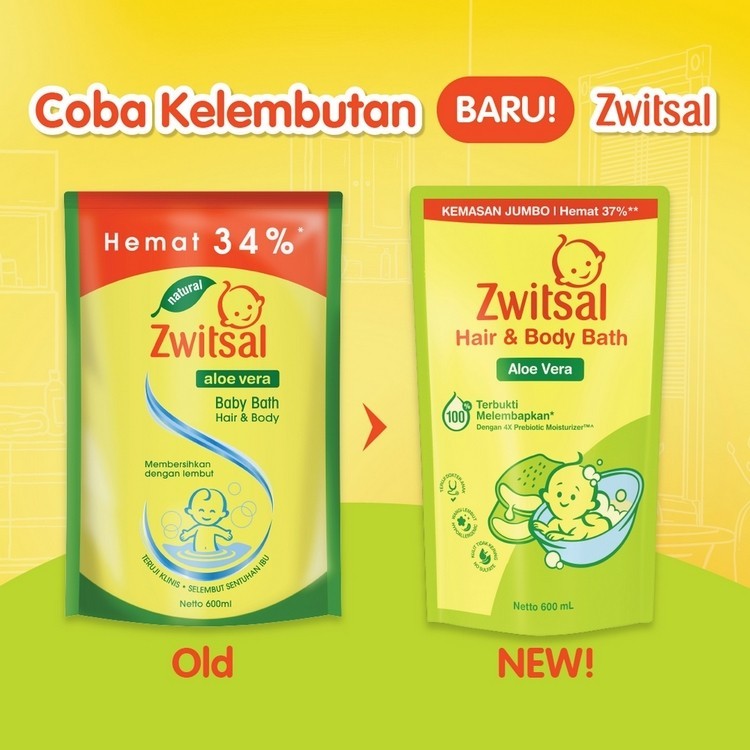 Zwitsal Baby Bath Hair & Body Aloe Vera 600ml Multipack Isi 4