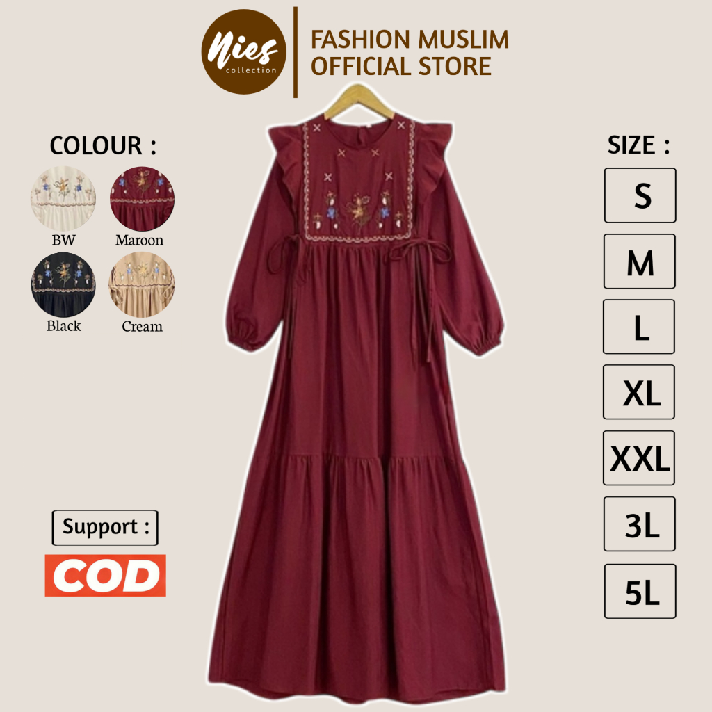 Cherika Dress Ukuran S M L XL XXL XXXL 5L Gamis Lebaran Jumbo Dress Jumbo Bahan Linen