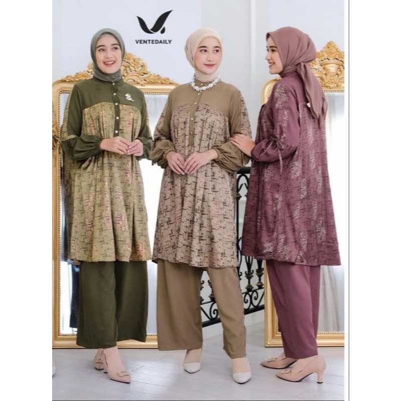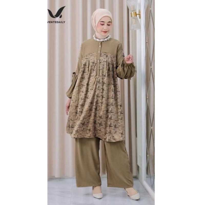 W G SHANIA SETLONG TUNIK CRINKLE ALEVA TERBARU 2024 SETELAN KOREA STYLE TERLARIS 0NESET WANITA KEKINIAN