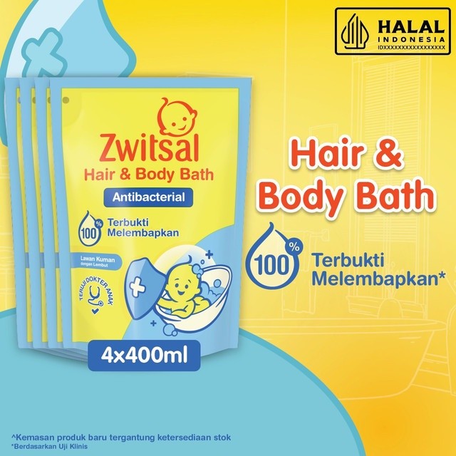 Zwitsal Baby Bath Hair and Body Antibacterial 400ml x4