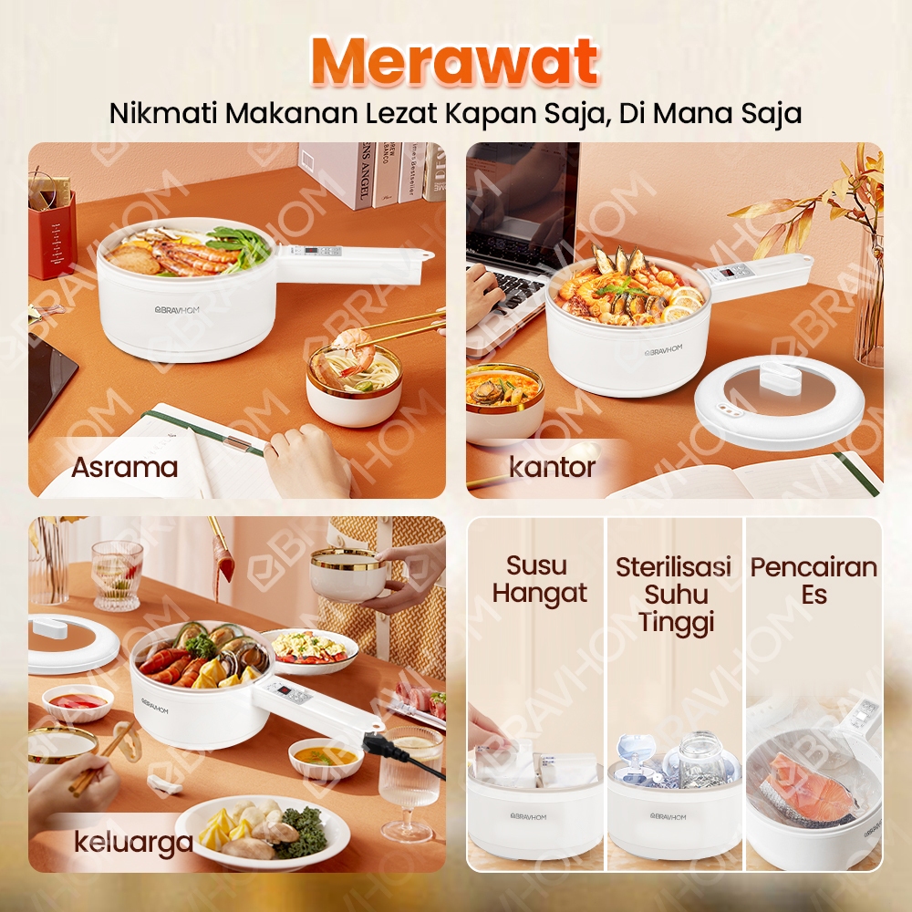 BRAVHOM Panci Listrik Serba Guna Kukusan 1.8L 6in1 Anti Lengket Perlindungan Terlalu Panas BL-EP01 Terjangkau