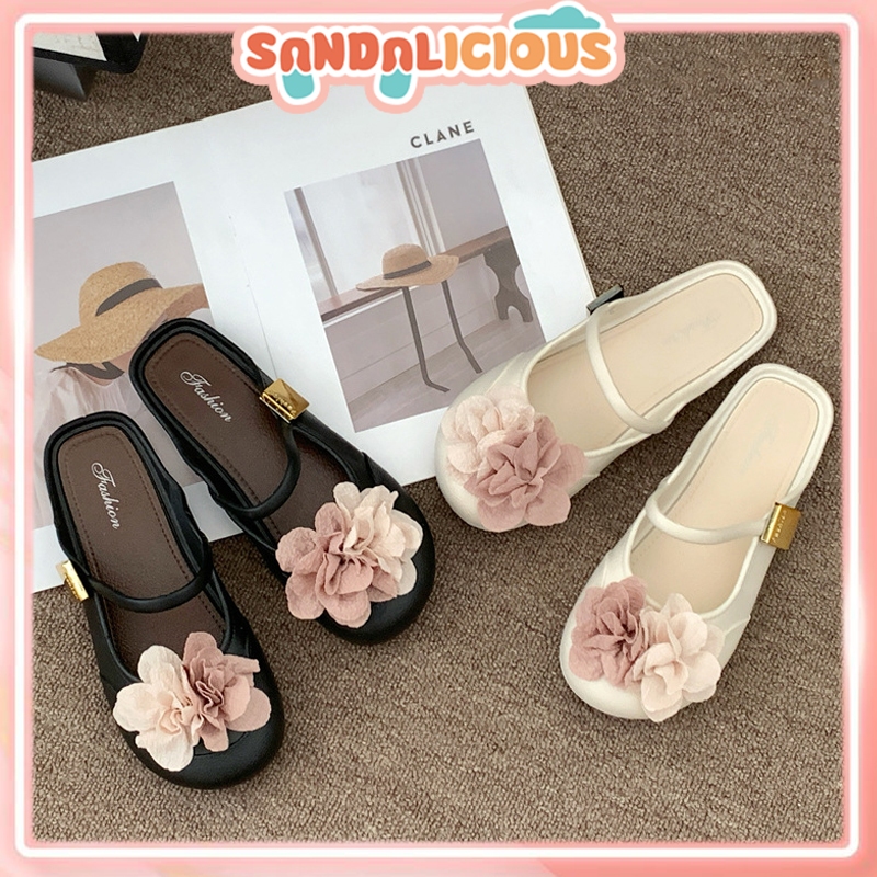 Flat Shoes Wanita Mary Janes Bunga Kekinian Bahan Karet Ringan / Sepatu Flat Perempuan Korean Style