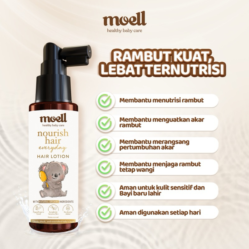 Moell Nourish Hair Everyday Hair Lotion 100ml Menutrisi Rambut Bayi Natural Organic