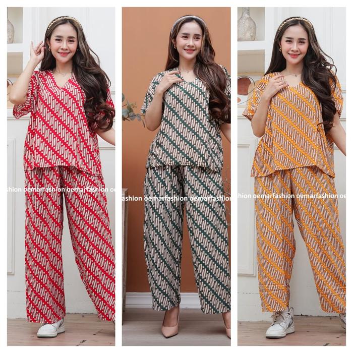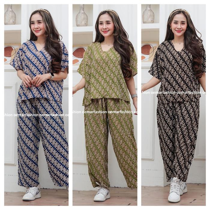 Paket Hemat 3 Pcs || Setelan Celana Panjang Kulot Motif Seno || Setelan Batik Ld 120 Panjang Celana 90 || Bahan Rayon -