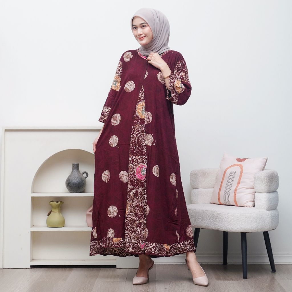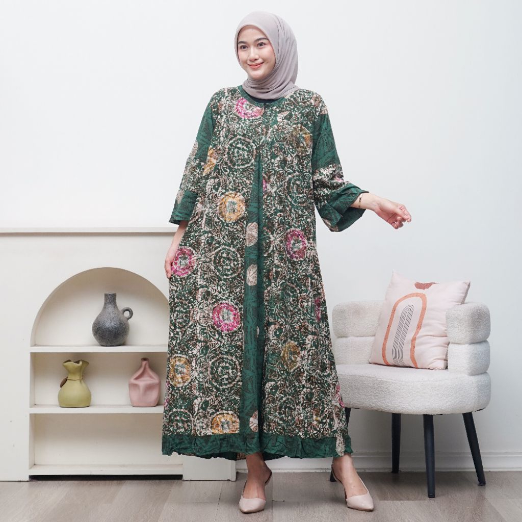 BARU Dress Talitha Busui Resleting Motif Batik Cap Rayon Tebal Wanita Adem Nyaman Bunga Cantik Casual Gaun Rempel