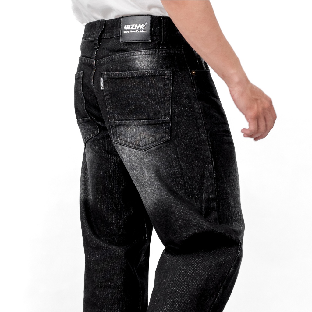 Gizmo - Celana Jeans Wide Leg Wisker Lebar Gombrong Skena Black Wisker pria loose fit jumbo big keren Bahan Denim