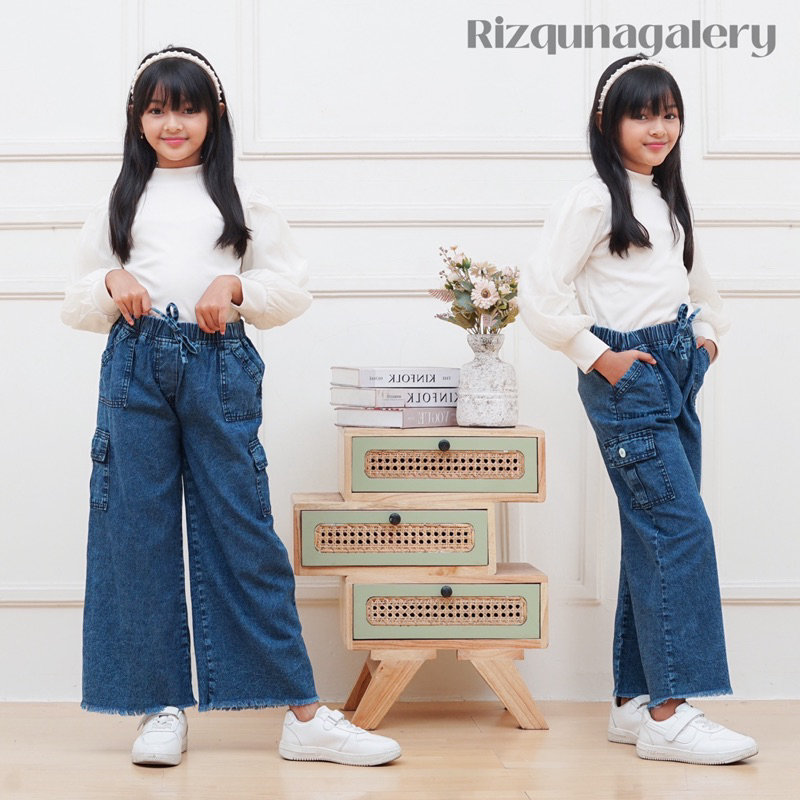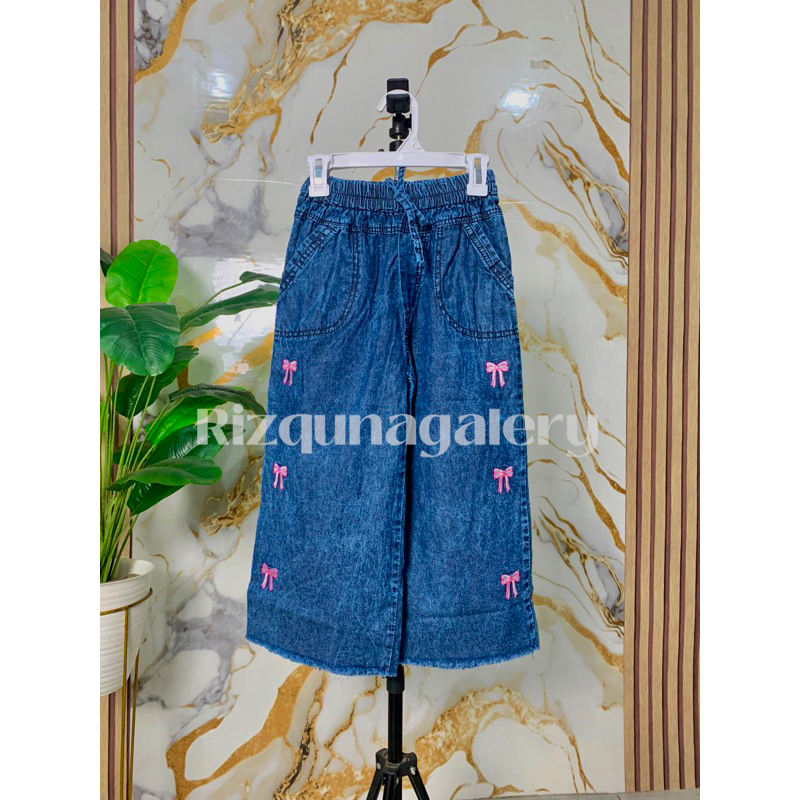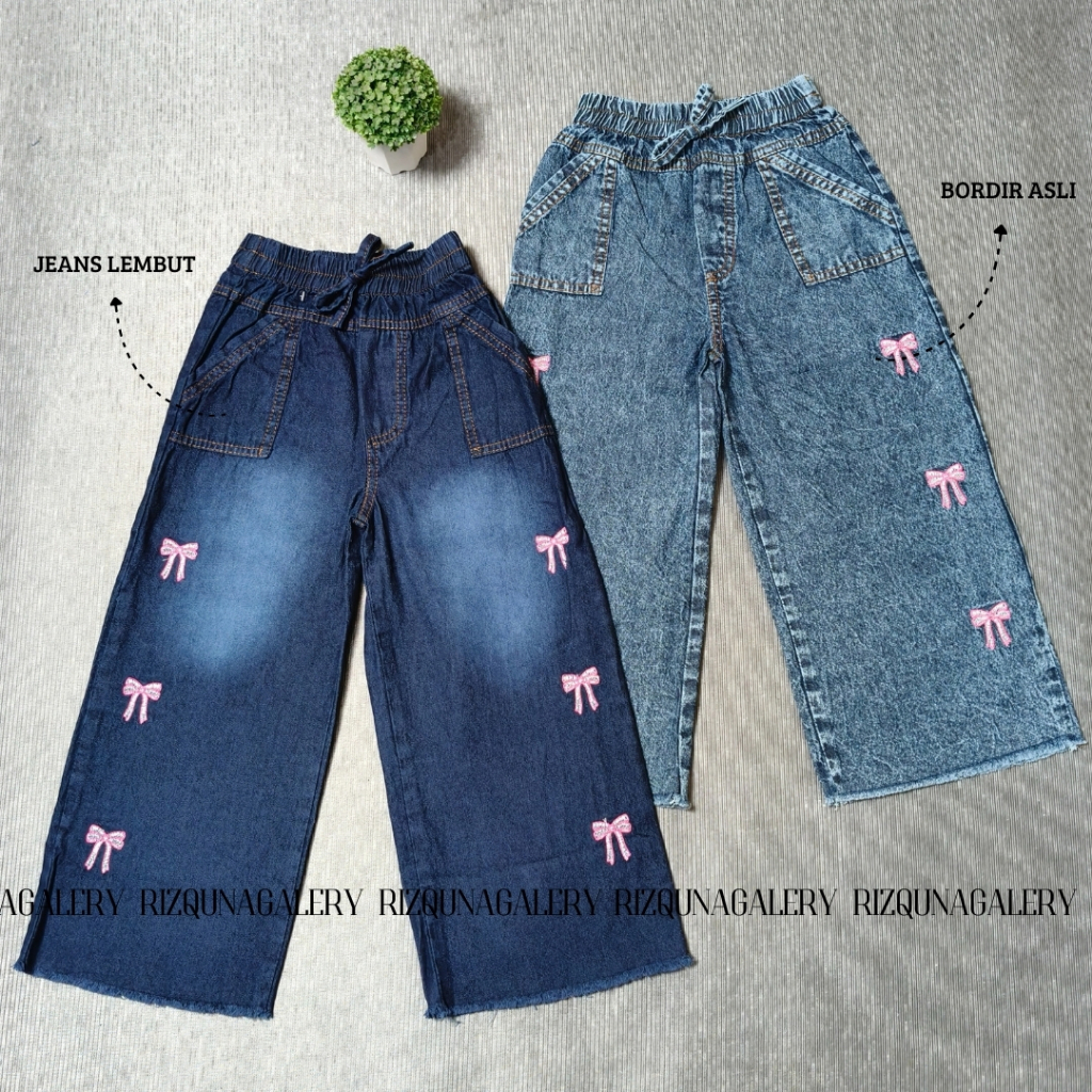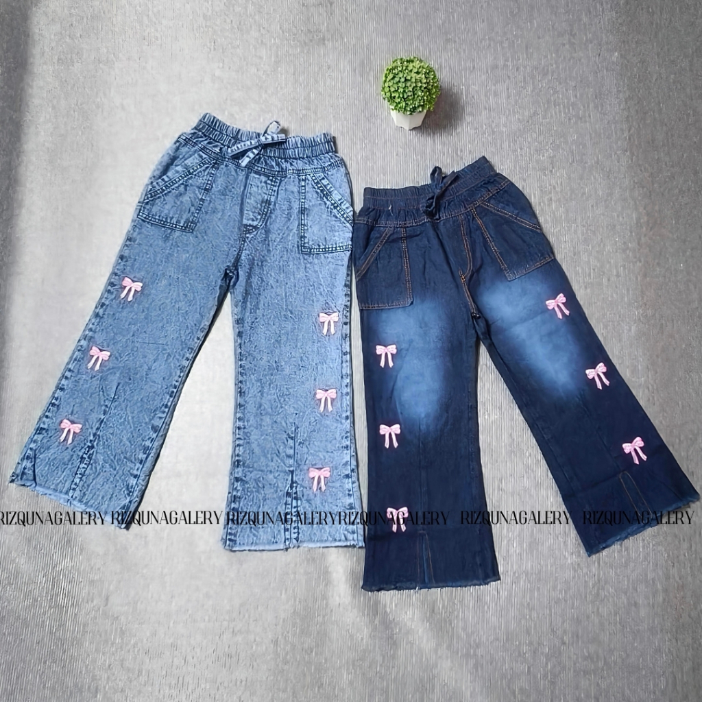 CELANA JEANS ANAK PEREMPUAN PANJANG AKSEN MOTIF BORDIR PITA KUPU BUNGA CANTIK