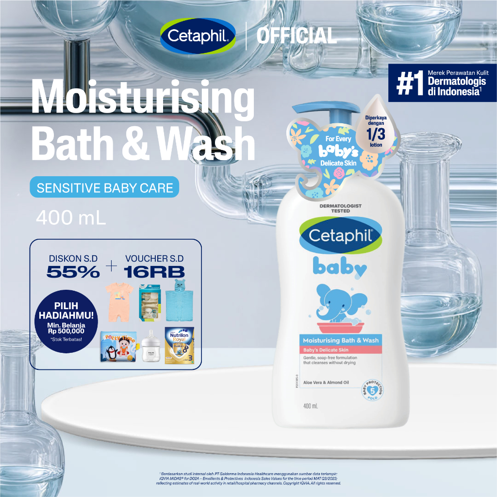 Cetaphil Baby Moist Bath & Wash 400ml Dengan Almond Oil Perawatan Sabun Mandi untuk Melembapkan Kulit Bayi