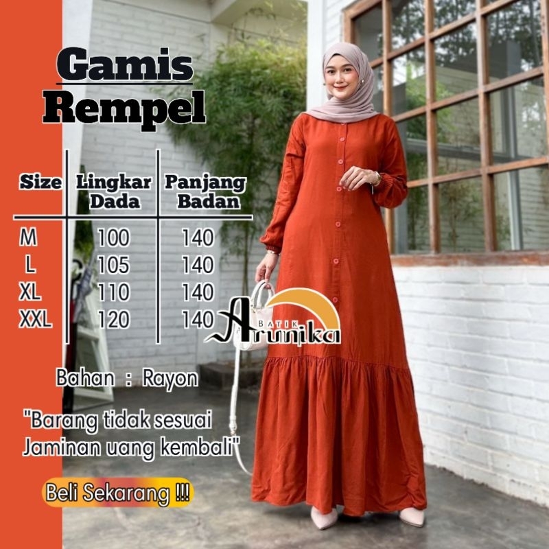 GAMIS REMPEL KANCING RAYON POLOS BAHAN RAYON PREMIUM BUSUI FRIENDLY SIZE M L XL XXL BATIK ARUNIKA