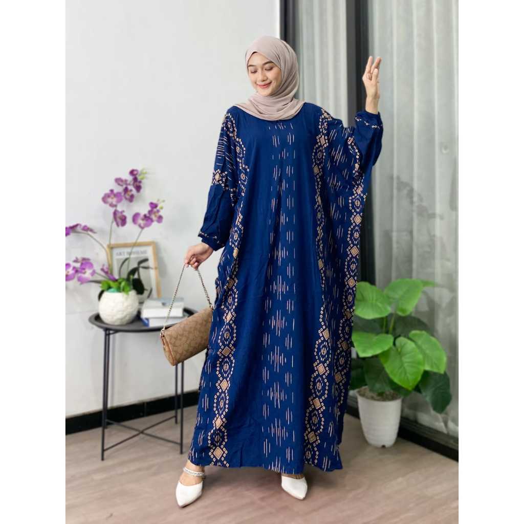 Gamis Kaftan Batik Rayon Premium Jumbo Terbaru Motif Lidi Abaya Long Dress Wanita Busui Kekinian