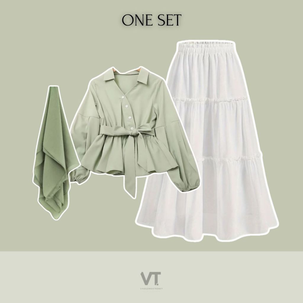 One Set Mery Hijab Blouse Rok Setelan Baju Wanita hijab OOTD Korea