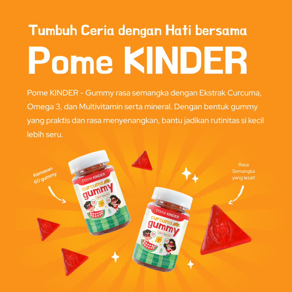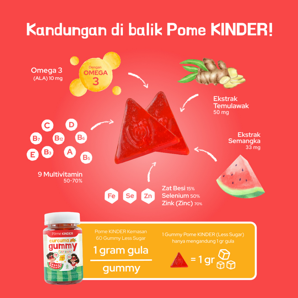 Pome KINDER Less Sugar Gummy rasa semangka dengan Ekstrak Curcuma, Omega 3, Multivitamin & Mineral